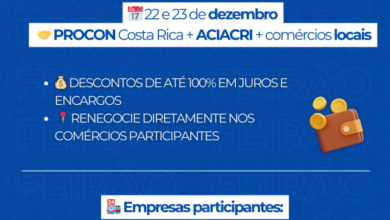 Procon Costa Rica, ACIACRI e empresas locais realizam 1º Feirão de Renegociação de Dívidas dias 22 e 23 de dezembro
